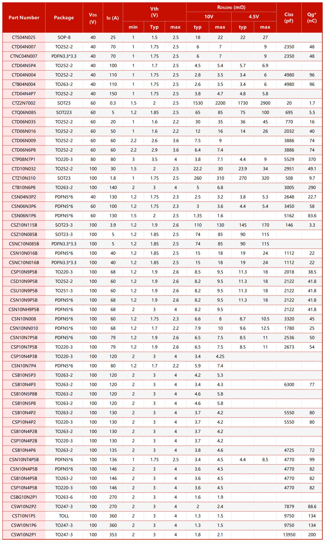CSV3545可搭配best365英国在线体育100V以下MOS选型表: