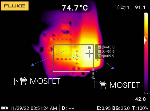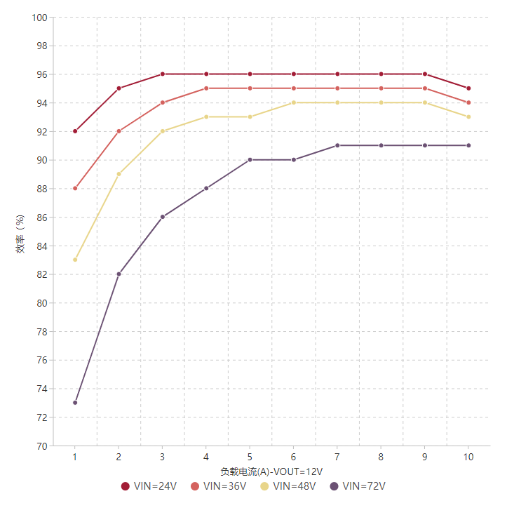 测试工况:VIN=48V, VOUT=12V, IOUT=10A(1min)
